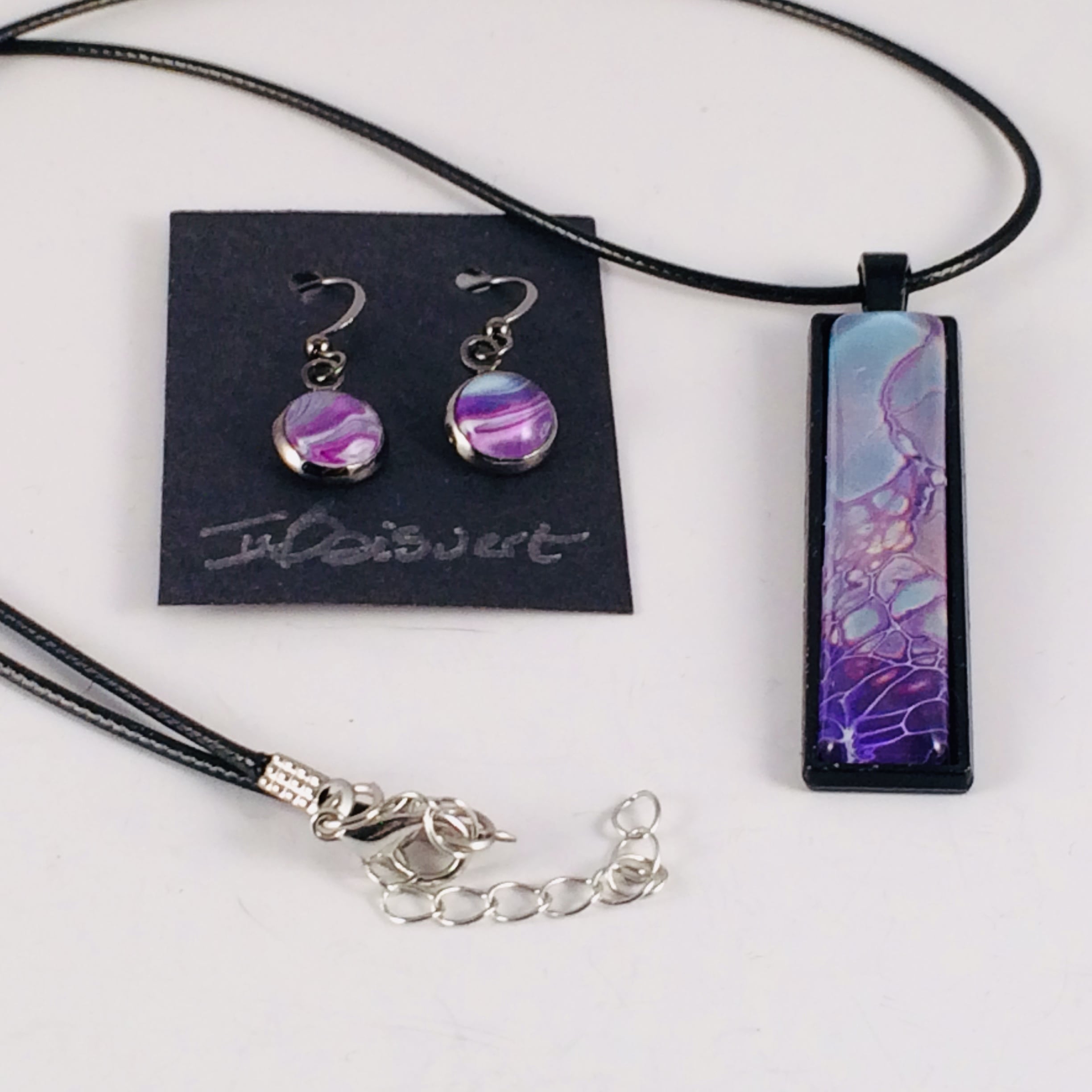 Superbe ensemble aux couleurs iridescentes de violet, d’or et de bleu